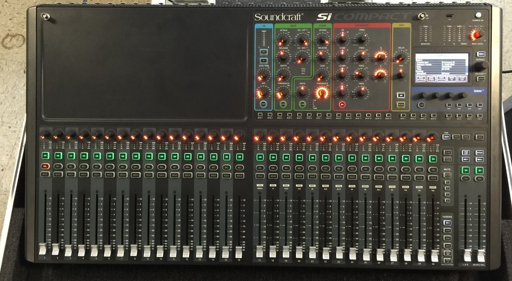 We have several live consoles including a Yamaha QL5, Soundcraft SI Compact 32, a Behringer X32 Producer with expansion for 32 mic inputs, and various smaller format consoles.
